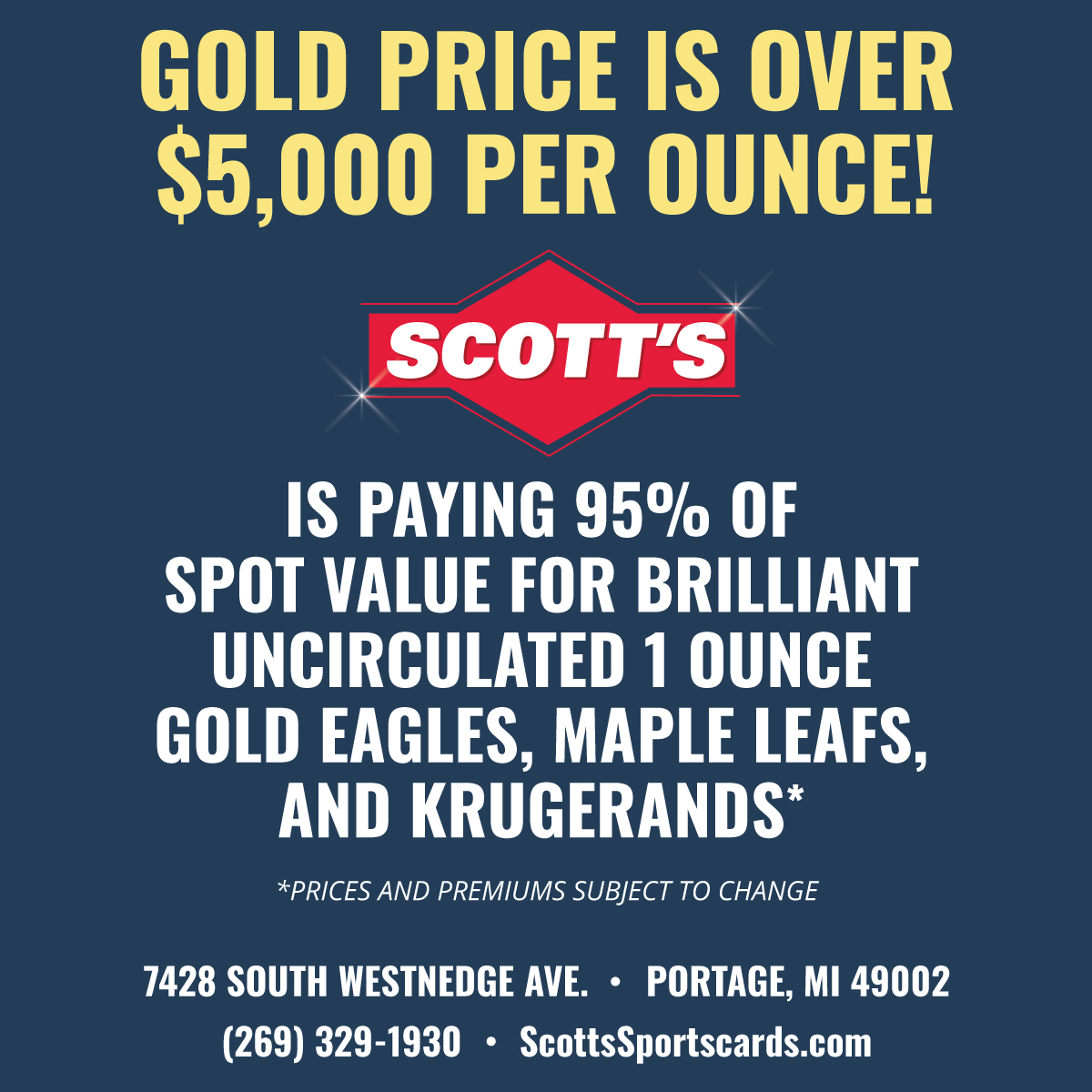 - Scott’s buys coins, .999 bars, and rounds